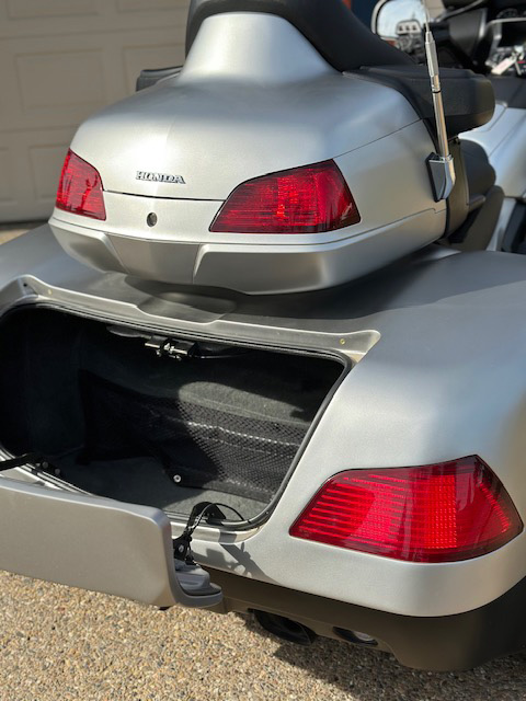 Navigation Package, Air Bag Model, Electric Reverse, Cruise Control, Finger Tip Suspension Adjustment, RoadSmith Running Boards, Raked Triple Tree/EZ Steer, New Avon Trike Front Tire, New Rear Tires, Chrome Accent Panels abound, Rear Spoiler w/ Brake Light, Top Trunk LEDS, Axillary Fuel Tank, Trike Body Fender Accent Lighting, Kuryakyn Passenger Floor Boards, and Rider Highway Pegs, Auxiliary Fuel Tank, Just completed Full Service / All Fluids Changed or Flushed, and K&N Air Filter, AND Both Tanks Full of Gas!